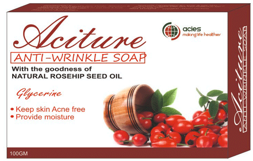Aciture Anti – Wrinkle soap helps to regenerate skin cells, reduce wrinkles and scars. Used for centuries for its natural abilities the oil of the rose hips contains carotenoids, Vitamin A, high concentrations of vitamin C, along with the 77% containment of linoleum and linolenic fatty acids, which provides tissue rejuvenating properties that help prevent premature skin aging It prevents advancement of ageing and wrinkles. And increases skin elasticity.