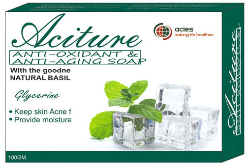 Aciture Anti-Oxidant Soap is enriched with moisturisers and keeps the skin nourished all day. It nourishes your skin and protect it against free radicals and skin damage. Infusion of basil leaves and flowers helps stimulate and refresh dull complexions