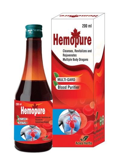 The most important organ of human body is our skin. Blood impurities are a major cause for skin diseases. Purifying the bloodis a unique process in Indian Ayurvedic System to get rid of skin diseases. Palliative internal medication is one of the various blood purifying methods explained in Ayurved. Hemopure is manufactured based on the ancient Arishta preparation process. The exquisite herbs used in the preparation of this Aristha are well known for purifying the blood and cure skin diseases.